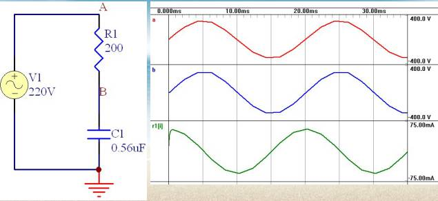 電容器實際上起到一個限制電流和動態分配電容器和負載兩端電壓的角色。